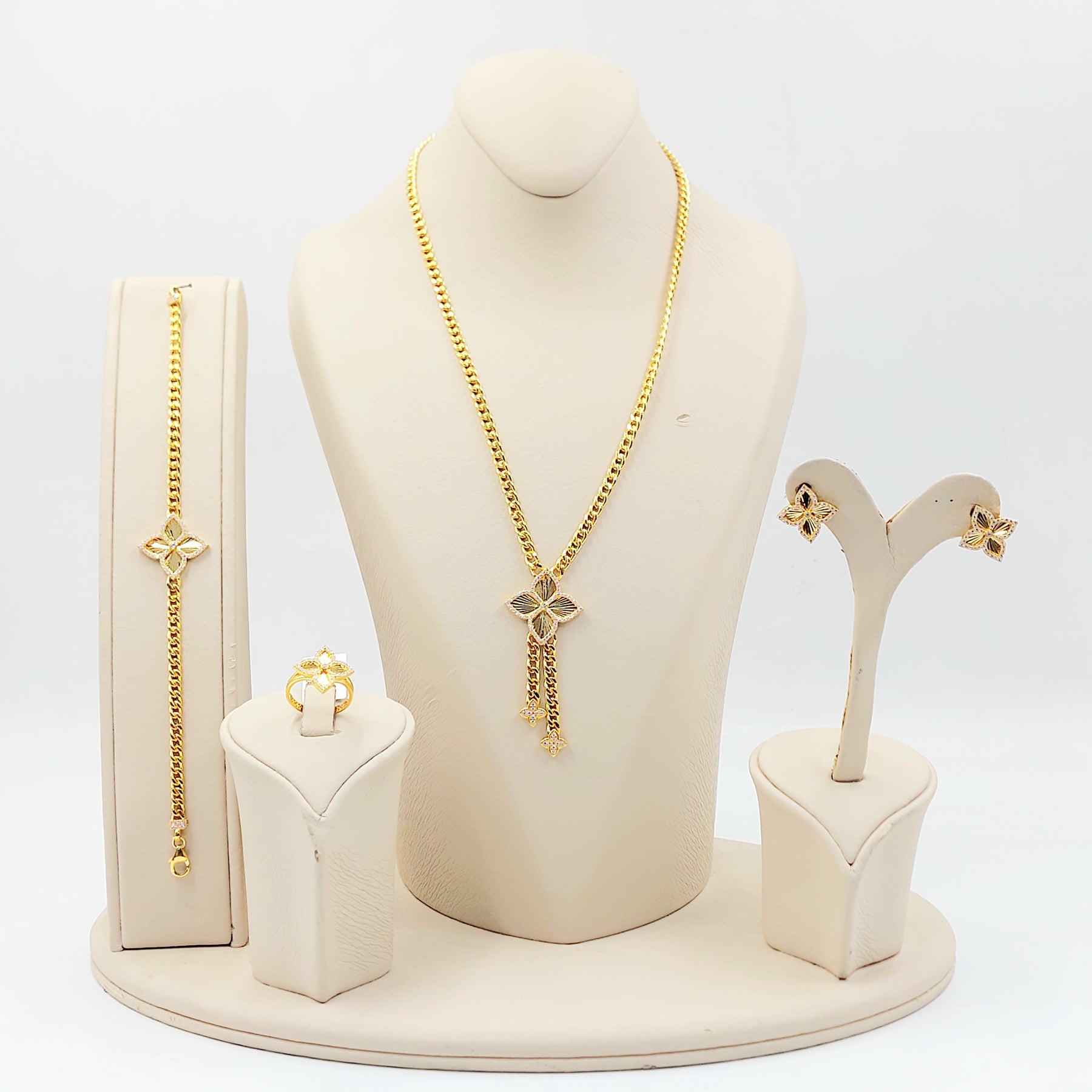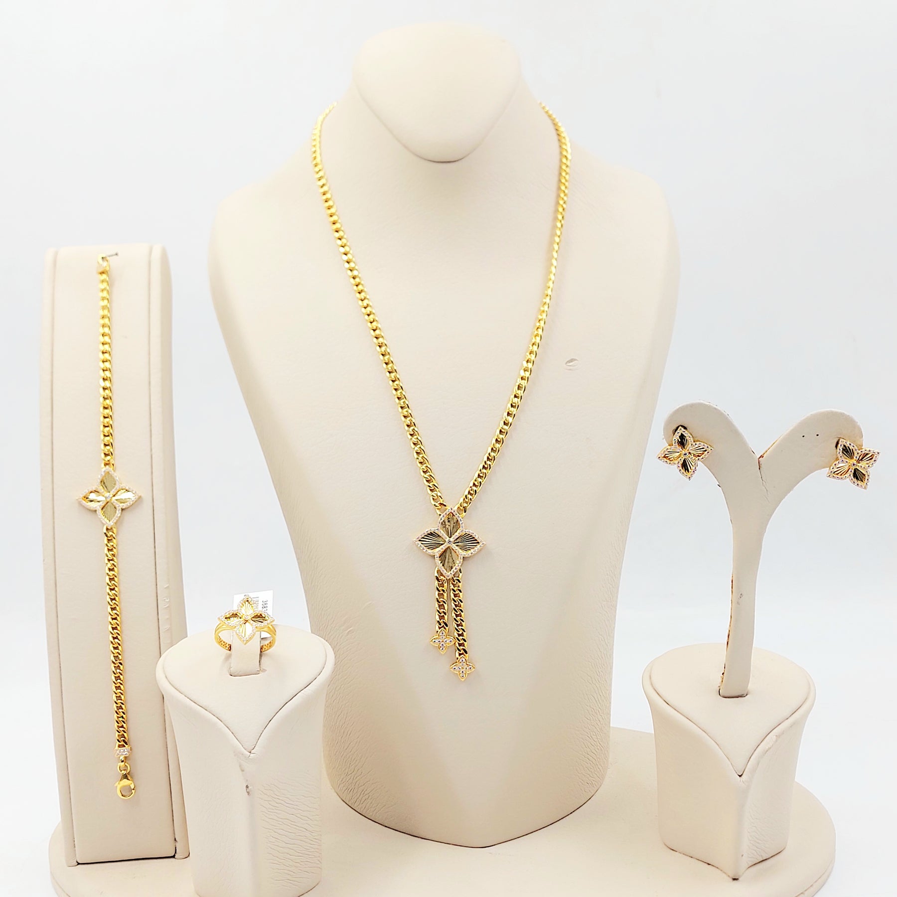 21K طقم وردة مرصع-مجوهرات الشيخ سعيد-Saeed Jewelry