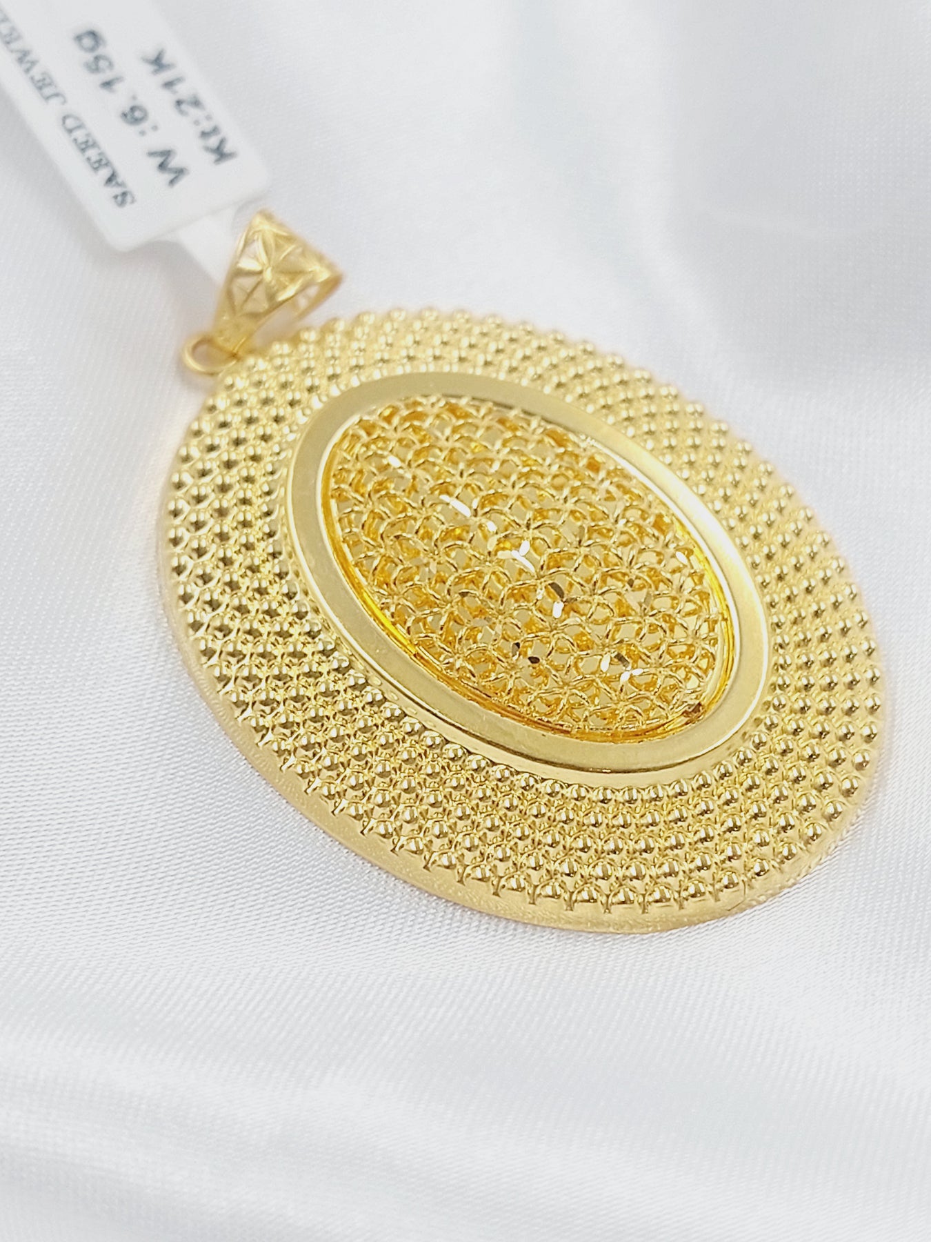 21K تعليقة بيضاوي نقش-مجوهرات الشيخ سعيد-Saeed Jewelry