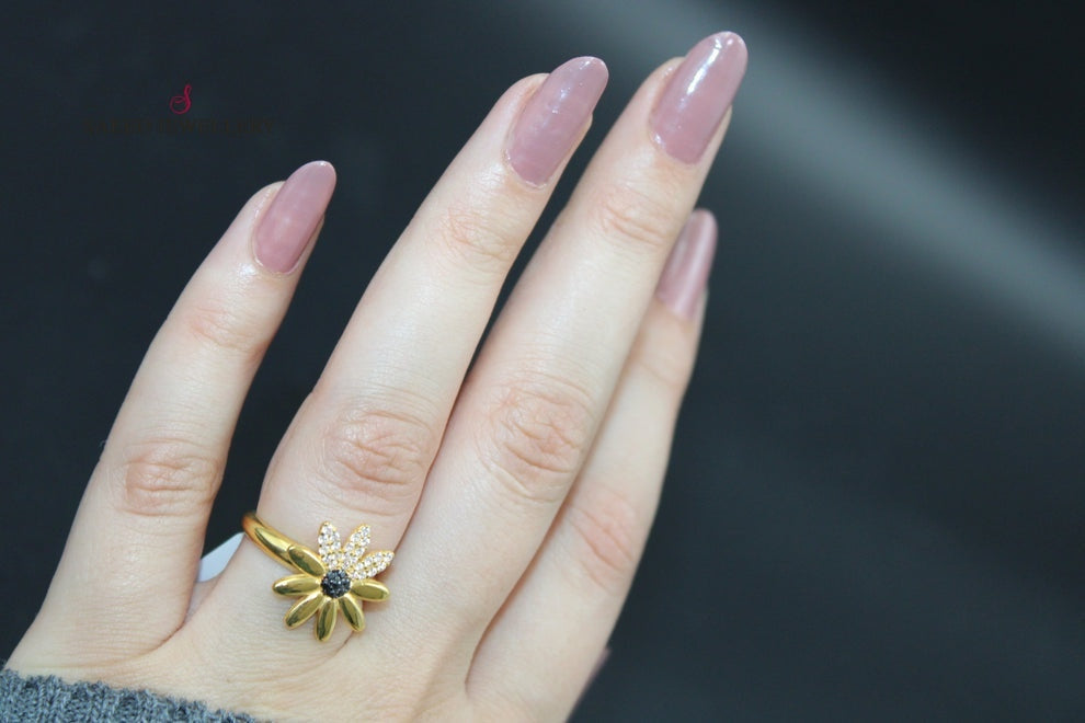 21K Zirconia Ring Made of 21K Yellow Gold by Saeed Jewelry-25872